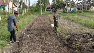 FAKTAHUKUM86.COM|SALIMPAUNG -Buka lapangan pekerjaan Babinsa Koramil 09/SLP, Serda Afdil Sani laksanakan pemeliharaan tanam sayur kangkung…